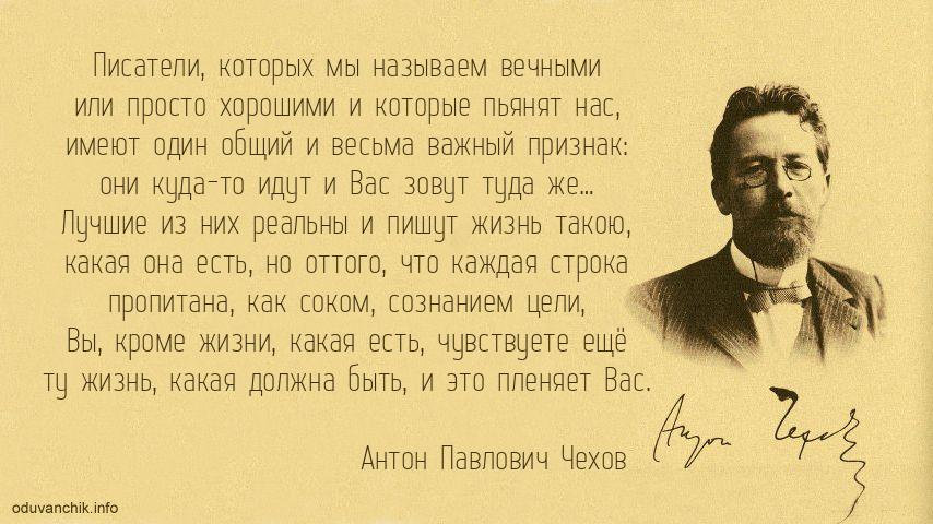 | Писатели, которых мы называем вечными или просто хорошими и которые пьянят нас, имеют один общий и весьма важный признак: они куда-то идут и Вас зовут туда же… Лучшие из них реальны и пишут жизнь такою, какая она есть, но оттого, что каждая строка пропитана, как соком, сознанием цели, Вы, кроме жизни, какая есть, чувствуете ещё ту жизнь, какая должна быть, и это пленяет Вас. |
