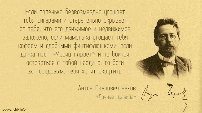 «Если папенька безвозмездно угощает тебя сигарами и старательно скрывает от тебя, что его движимое и недвижимое заложено, если маменька угощает тебя кофеем и сдобными финтифлюшками, если дочка поет «Месяц плывет» и не боится оставаться с тобой наедине, то беги за городовым: тебя хотят окрутить.»