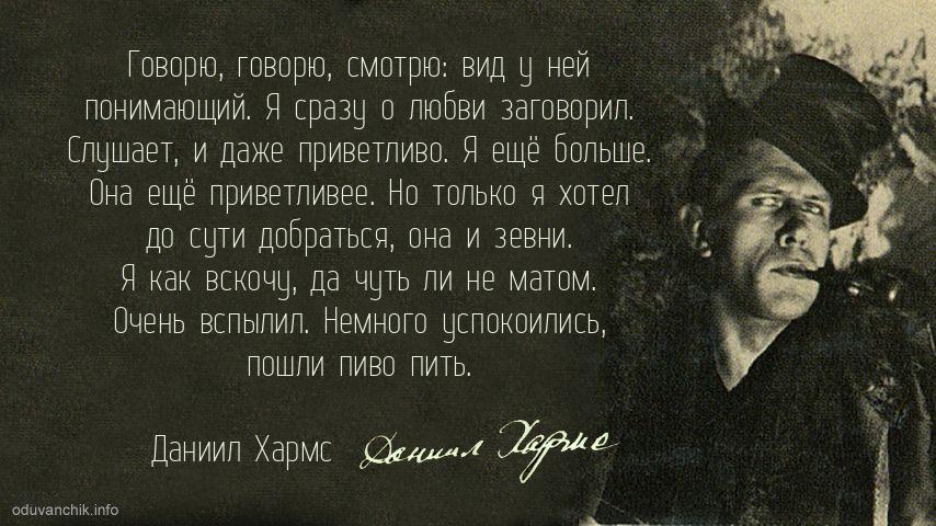 «Говорю, говорю, смотрю: вид у ней понимающий. Я сразу о любви заговорил. Слушает, и даже приветливо. Я ещё больше. Она ещё приветливее. Но только я хотел до сути добраться, она и зевни. Я как вскочу, да чуть ли не матом. Очень вспылил. Немного успокоились, пошли пиво пить.»