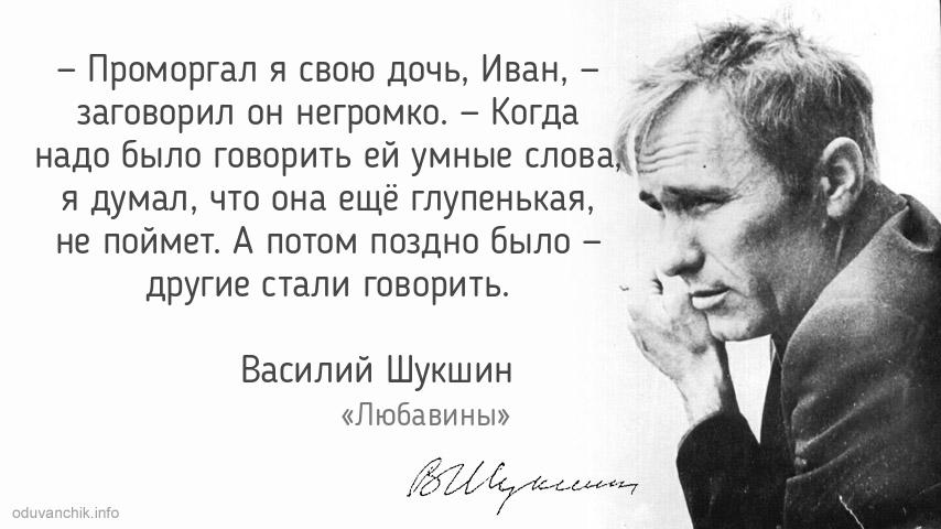 «— Проморгал я свою дочь, Иван, — заговорил он негромко. — Когда надо было говорить ей умные слова, я думал, что она ещё глупенькая, не поймет. А потом поздно было — другие стали говорить.»