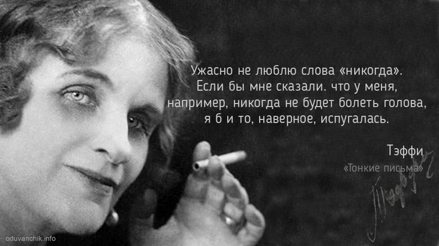 «Ужасно не люблю слова «никогда». Если бы мне сказали. что у меня, например, никогда не будет болеть голова, я б и то, наверное, испугалась.»