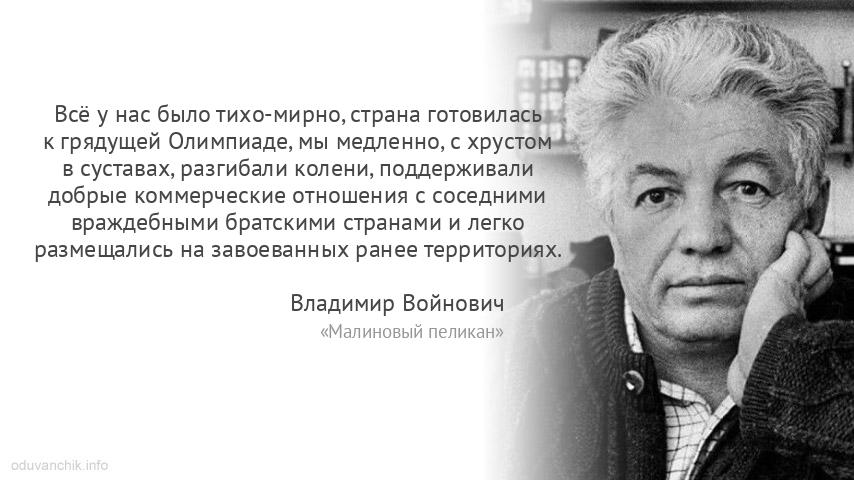 | Всё у нас было тихо-мирно, страна готовилась к грядущей Олимпиаде, мы медленно, с хрустом в суставах, разгибали колени, поддерживали добрые коммерческие отношения с соседними враждебными братскими странами и легко размещались на завоеванных ранее территориях. |