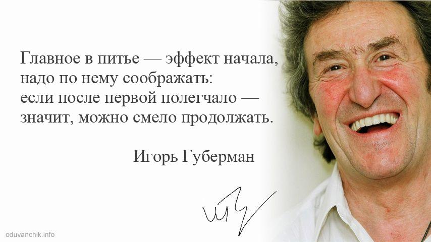 | Главное в питье — эффект начала, надо по нему соображать: если после первой полегчало — значит, можно смело продолжать. |