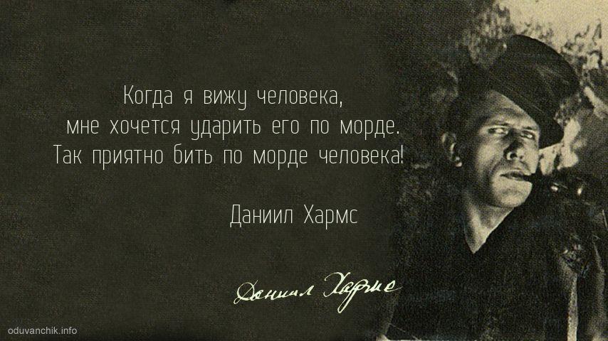 | Когда я вижу человека, мне хочется ударить его по морде. Так приятно бить по морде человека! |