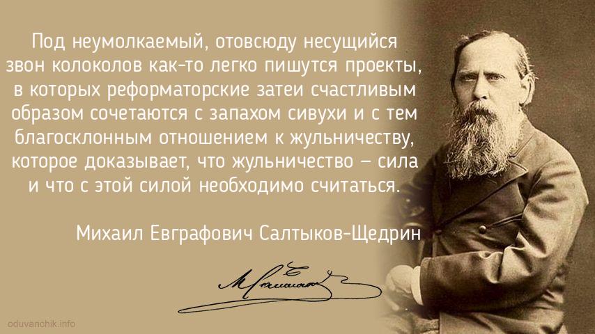 | Под неумолкаемый, отовсюду несущийся звон колоколов как-то легко пишутся проекты, в которых реформаторские затеи счастливым образом сочетаются с запахом сивухи и с тем благосклонным отношением к жульничеству, которое доказывает, что жульничество — сила и что с этой силой необходимо считаться. |