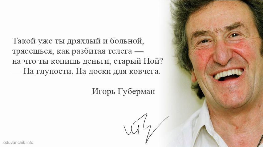| Такой уже ты дряхлый и больной, трясешься, как разбитая телега — на что ты копишь деньги, старый Ной? — На глупости. На доски для ковчега. |
