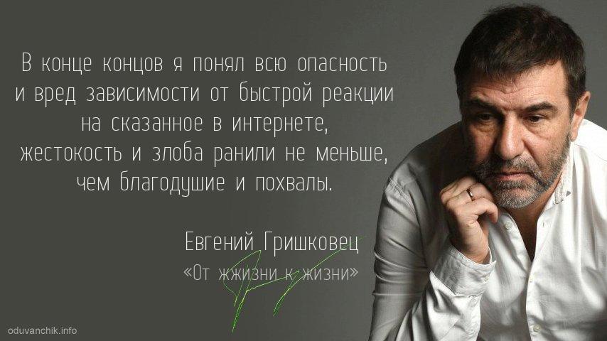 | В конце концов я понял всю опасность и вред зависимости от быстрой реакции на сказанное в интернете, жестокость и злоба ранили не меньше, чем благодушие и похвалы. |