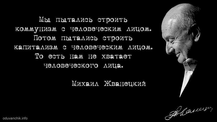| Мы пытались строить коммунизм с человеческим лицом. Потом пытались строить капитализм с человеческим лицом. То есть нам не хватает человеческого лица. |