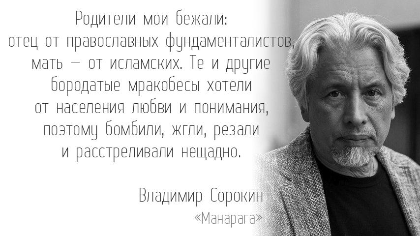 | Родители мои бежали: отец от православных фундаменталистов, мать — от исламских. Те и другие бородатые мракобесы хотели от населения любви и понимания, поэтому бомбили, жгли, резали и расстреливали нещадно. |