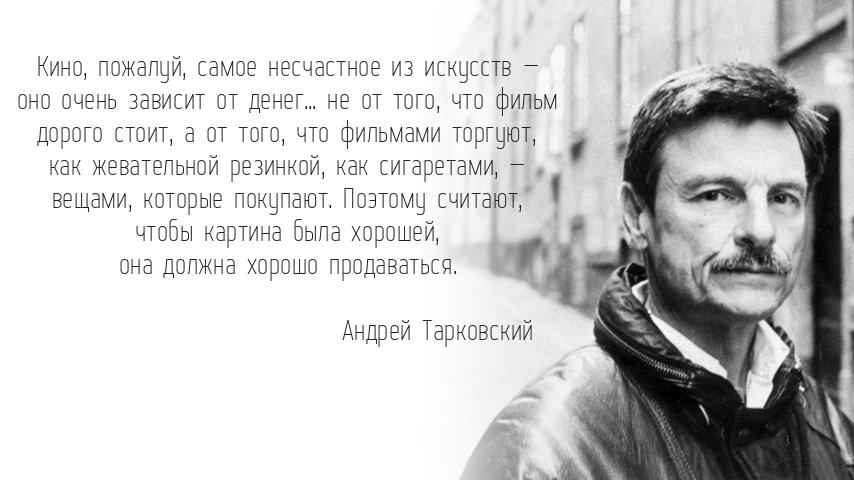 | Кино, пожалуй, самое несчастное из искусств — оно очень зависит от денег… не от того, что фильм дорого стоит, а от того, что фильмами торгуют, как жевательной резинкой, как сигаретами, — вещами, которые покупают. Поэтому считают, чтобы картина была хорошей, она должна хорошо продаваться. |
