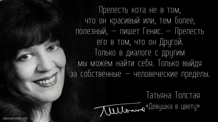 «Прелесть кота не в том, что он красивый или, тем более, полезный, — пишет Генис. — Прелесть его в том, что он Другой. Только в диалоге с другим мы можем найти себя. Только выйдя за собственные — человеческие пределы.»