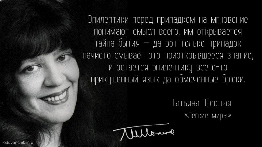 «Эпилептики перед припадком на мгновение понимают смысл всего, им открывается тайна бытия — да вот только припадок начисто смывает это приоткрывшееся знание, и остается эпилептику всего-то прикушенный язык да обмоченные брюки.»