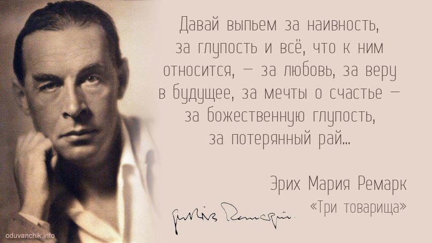 | Давай выпьем за наивность, за глупость и всё, что к ним относится, — за любовь, за веру в будущее, за мечты о счастье — за божественную глупость, за потерянный рай… |