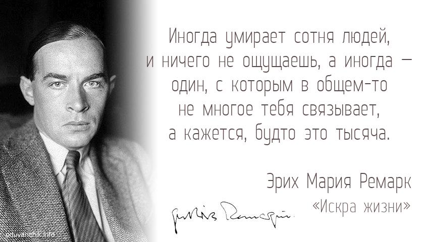 | Иногда умирает сотня людей, и ничего не ощущаешь, а иногда — один, с которым в общем-то не многое тебя связывает, а кажется, будто это тысяча. |