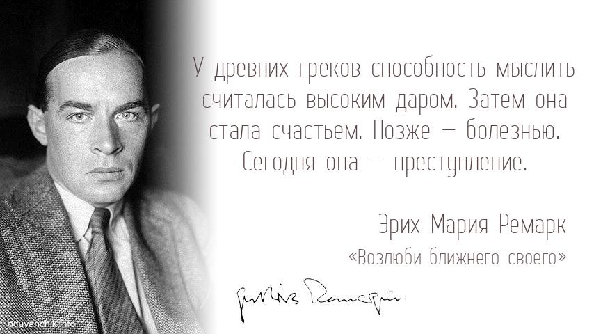 «У древних греков способность мыслить считалась высоким даром. Затем она стала счастьем. Позже — болезнью. Сегодня она — преступление.»