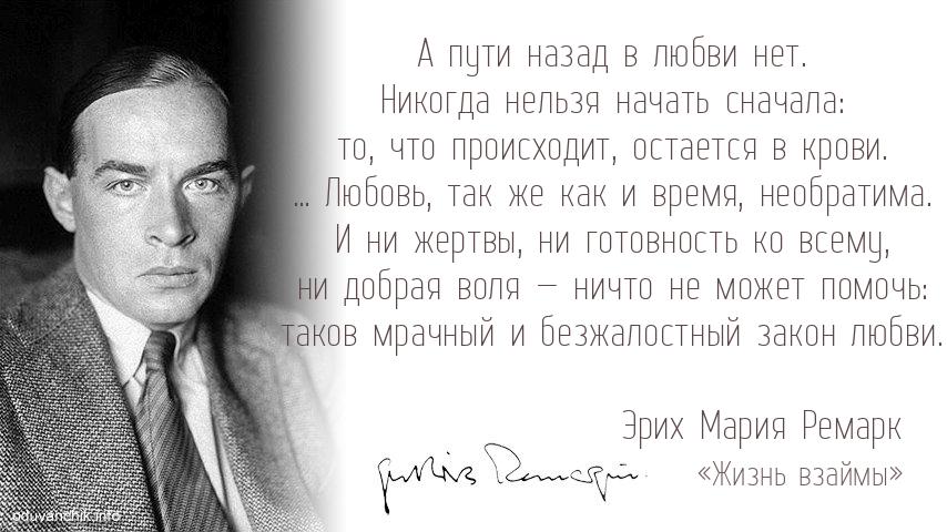 | А пути назад в любви нет. Никогда нельзя начать сначала: то, что происходит, остается в крови. … Любовь, так же как и время, необратима. И ни жертвы, ни готовность ко всему, ни добрая воля — ничто не может помочь: таков мрачный и безжалостный закон любви. |