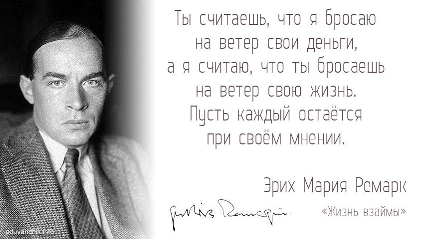 «Ты считаешь, что я бросаю на ветер свои деньги, а я считаю, что ты бросаешь на ветер свою жизнь. Пусть каждый остаётся при своём мнении.»