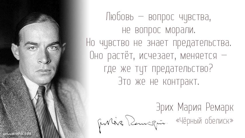 | Любовь — вопрос чувства, не вопрос морали. Но чувство не знает предательства. Оно растёт, исчезает, меняется — где же тут предательство? Это же не контракт. |