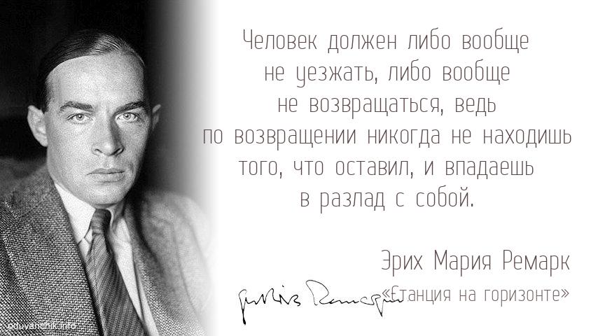 | Человек должен либо вообще не уезжать, либо вообще не возвращаться, ведь по возвращении никогда не находишь того, что оставил, и впадаешь в разлад с собой. |