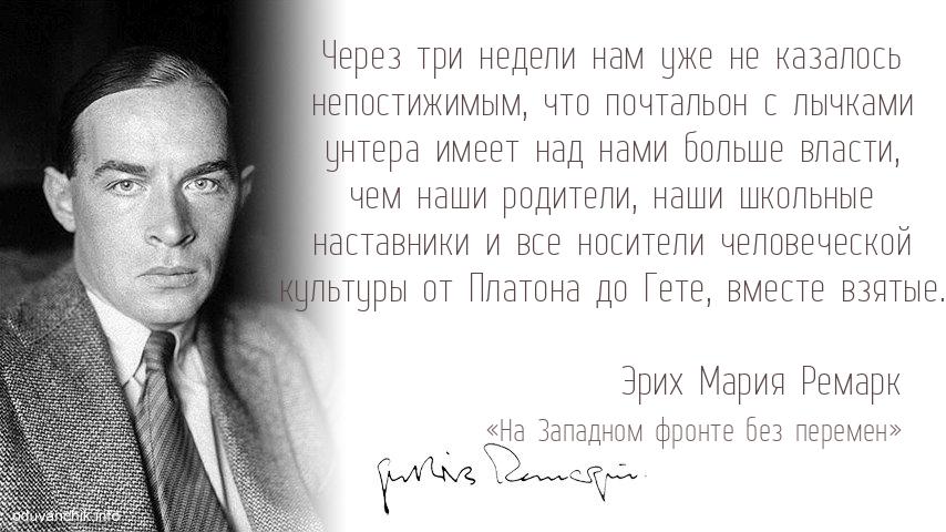 | Через три недели нам уже не казалось непостижимым, что почтальон с лычками унтера имеет над нами больше власти, чем наши родители, наши школьные наставники и все носители человеческой культуры от Платона до Гете, вместе взятые. |