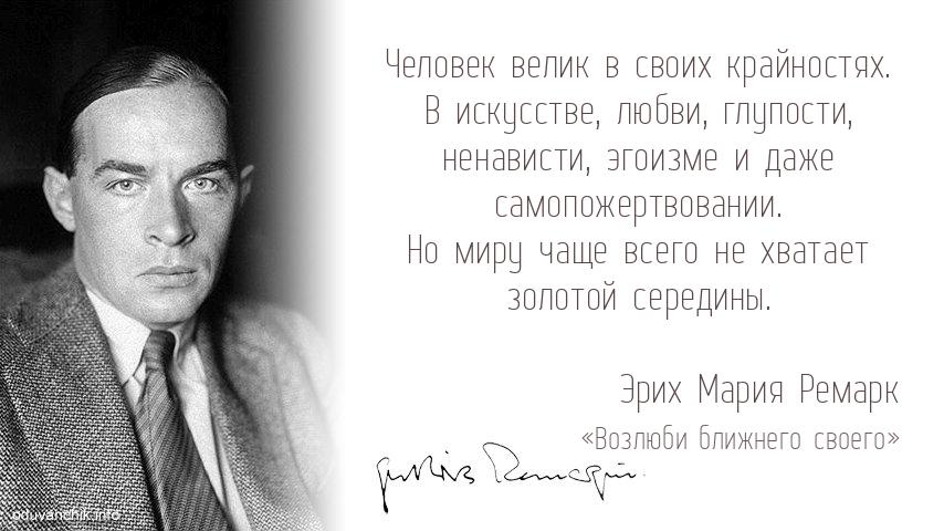 «Человек велик в своих крайностях. В искусстве, любви, глупости, ненависти, эгоизме и даже самопожертвовании. Но миру чаще всего не хватает золотой середины.»