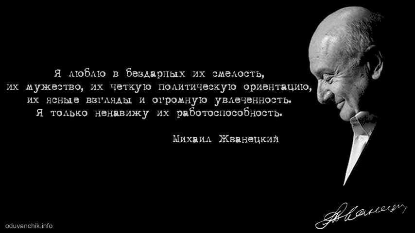 «Я люблю в бездарных их смелость, их мужество, их четкую политическую ориентацию, их ясные взгляды и огромную увлеченность. Я только ненавижу их работоспособность.»