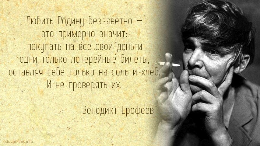 «Любить Родину беззаветно — это примерно значит: покупать на все свои деньги одни только лотерейные билеты, оставляя себе только на соль и хлеб. И не проверять их.»