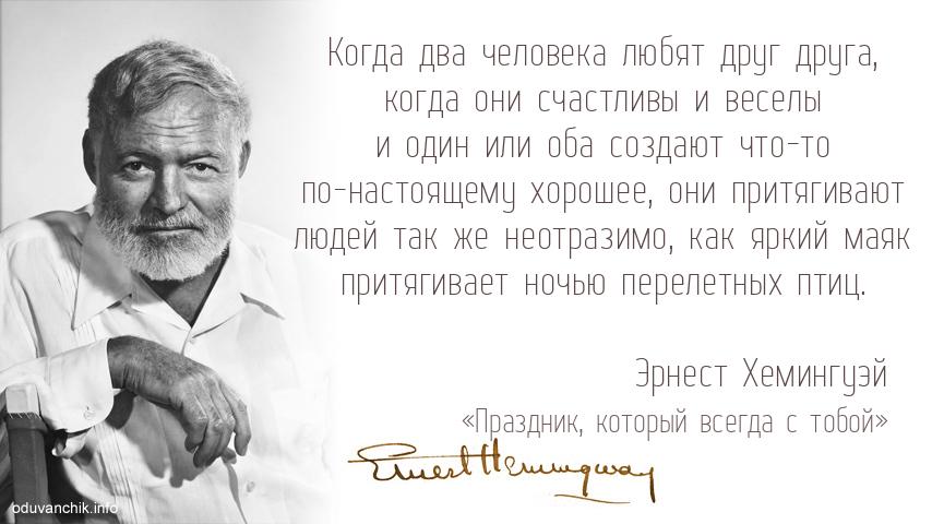 «Когда два человека любят друг друга, когда они счастливы и веселы и один или оба создают что-то по-настоящему хорошее, они притягивают людей так же неотразимо, как яркий маяк притягивает ночью перелетных птиц.»