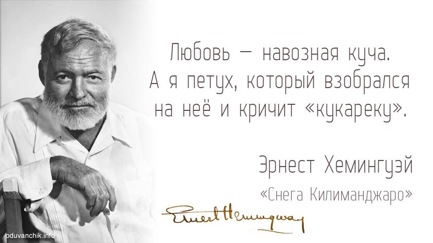 «Любовь — навозная куча. А я петух, который взобрался на неё и кричит «кукареку».»