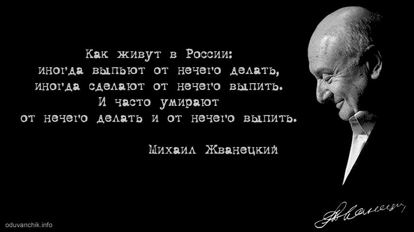 | Как живут в России: иногда выпьют от нечего делать, иногда сделают от нечего выпить. И часто умирают от нечего делать и от нечего выпить. |
