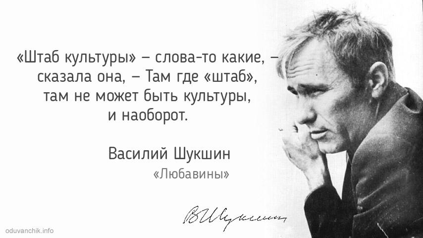 | «Штаб культуры» — слова-то какие, — сказала она, — Там где «штаб», там не может быть культуры, и наоборот. |