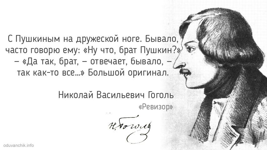 | С Пушкиным на дружеской ноге. Бывало, часто говорю ему: «Ну что, брат Пушкин?» — «Да так, брат, — отвечает, бывало, — так как-то все…» Большой оригинал. |