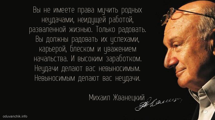 | Вы не имеете права мучить родных неудачами, неидущей работой, разваленной жизнью. Только радовать. Вы должны радовать их успехами, карьерой, блеском и уважением начальства. И высоким заработком. Неудачи делают вас невыносимым. Невыносимым делают вас неудачи. |
