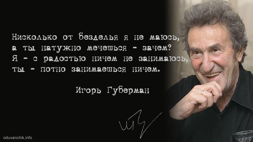 | Нисколько от безделья я не маюсь, а ты натужно мечешься — зачем? Я — с радостью ничем не занимаюсь, ты — потно занимаешься ничем. |