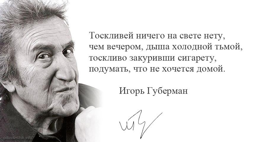 | Тоскливей ничего на свете нету, чем вечером, дыша холодной тьмой, тоскливо закуривши сигарету, подумать, что не хочется домой. |