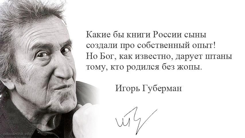 | Какие бы книги России сыны создали про собственный опыт! Но Бог, как известно, дарует штаны тому, кто родился без жопы. |