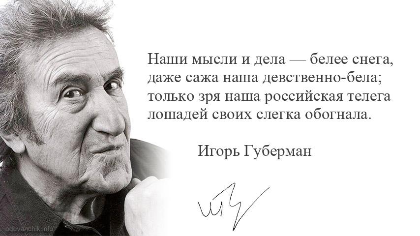 | Наши мысли и дела — белее снега, даже сажа наша девственно-бела; только зря наша российская телега лошадей своих слегка обогнала. |