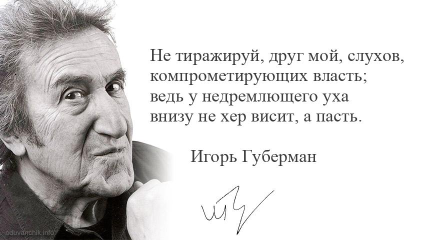 | Не тиражируй, друг мой, слухов, компрометирующих власть; ведь у недремлющего уха внизу не хер висит, а пасть. |