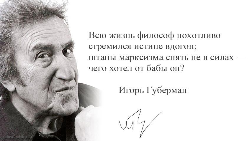 | Всю жизнь философ похотливо стремился истине вдогон; штаны марксизма снять не в силах — чего хотел от бабы он? |