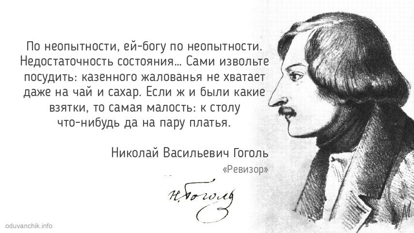 «По неопытности, ей-богу по неопытности. Недостаточность состояния… Сами извольте посудить: казенного жалованья не хватает даже на чай и сахар. Если ж и были какие взятки, то самая малость: к столу что-нибудь да на пару платья.»