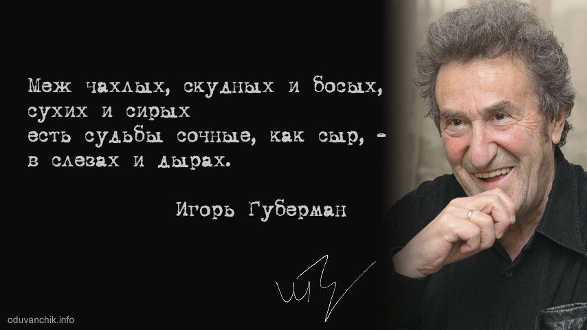 | Меж чахлых, скудных и босых, сухих и сирых есть судьбы сочные, как сыр, — в слезах и дырах. |