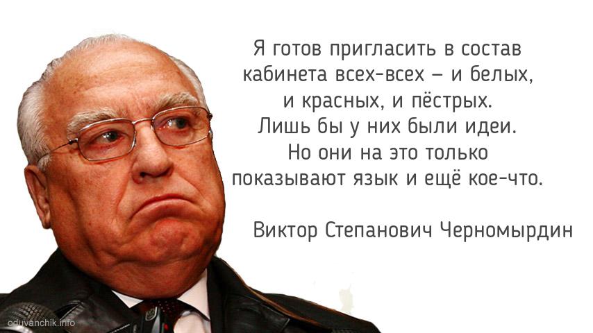 | Я готов пригласить в состав кабинета всех-всех — и белых, и красных, и пёстрых. Лишь бы у них были идеи. Но они на это только показывают язык и ещё кое-что. |