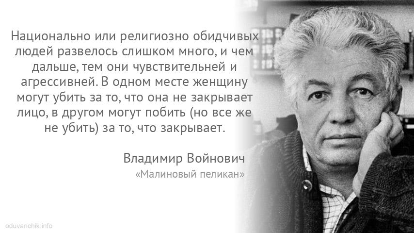 | Национально или религиозно обидчивых людей развелось слишком много, и чем дальше, тем они чувствительней и агрессивней. В одном месте женщину могут убить за то, что она не закрывает лицо, в другом могут побить (но все же не убить) за то, что закрывает. |