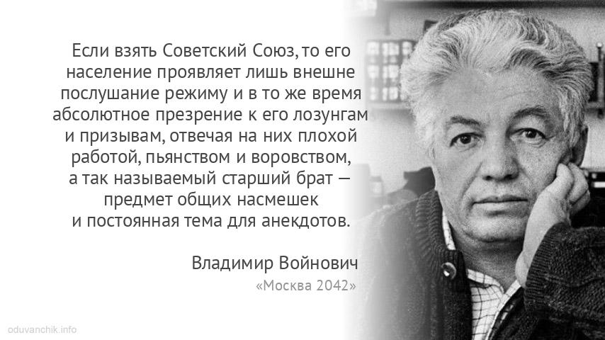 «Если взять Советский Союз, то его население проявляет лишь внешне послушание режиму и в то же время абсолютное презрение к его лозунгам и призывам, отвечая на них плохой работой, пьянством и воровством, а так называемый старший брат — предмет общих насмешек и постоянная тема для анекдотов.»