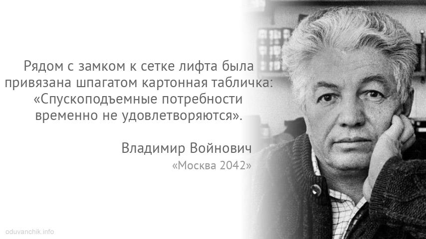 «Рядом с замком к сетке лифта была привязана шпагатом картонная табличка: «Спускоподъемные потребности временно не удовлетворяются».»