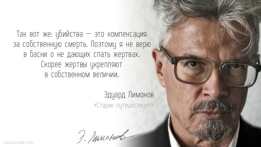 «Так вот же: убийства — это компенсация за собственную смерть. Поэтому я не верю в басни о не дающих спать жертвах. Скорее жертвы укрепляют в собственном величии.»