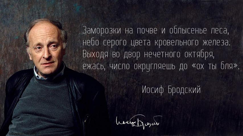 | Заморозки на почве и облысенье леса, небо серого цвета кровельного железа. Выходя во двор нечетного октября, ежась, число округляешь до «ох ты бля». |