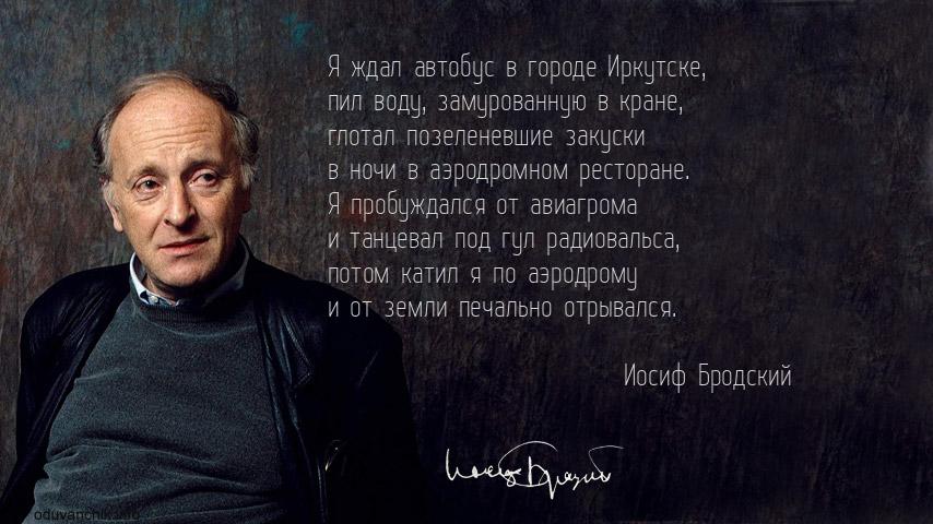 | Я ждал автобус в городе Иркутске, пил воду, замурованную в кране, глотал позеленевшие закуски в ночи в аэродромном ресторане. Я пробуждался от авиагрома и танцевал под гул радиовальса, потом катил я по аэродрому и от земли печально отрывался. |