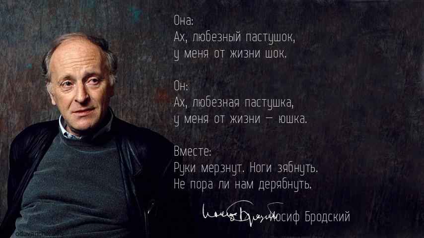 | Она: Ах, любезный пастушок, у меня от жизни шок. Он: Ах, любезная пастушка, у меня от жизни — юшка. Вместе: Руки мерзнут. Ноги зябнуть. Не пора ли нам дерябнуть. |
