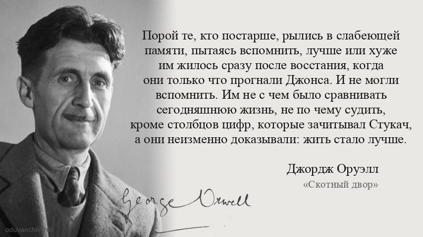 | Порой те, кто постарше, рылись в слабеющей памяти, пытаясь вспомнить, лучше или хуже им жилось сразу после восстания, когда они только что прогнали Джонса. И не могли вспомнить. Им не с чем было сравнивать сегодняшнюю жизнь, не по чему судить, кроме столбцов цифр, которые зачитывал Стукач, а они неизменно доказывали: жить стало лучше. |